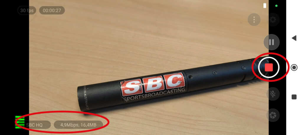 Nu kun je via het beginscherm op de “record-knop” klikken en dan wordt de feed gestart. Je kunt linksonder in beeld zien dat je verbinding hebt.